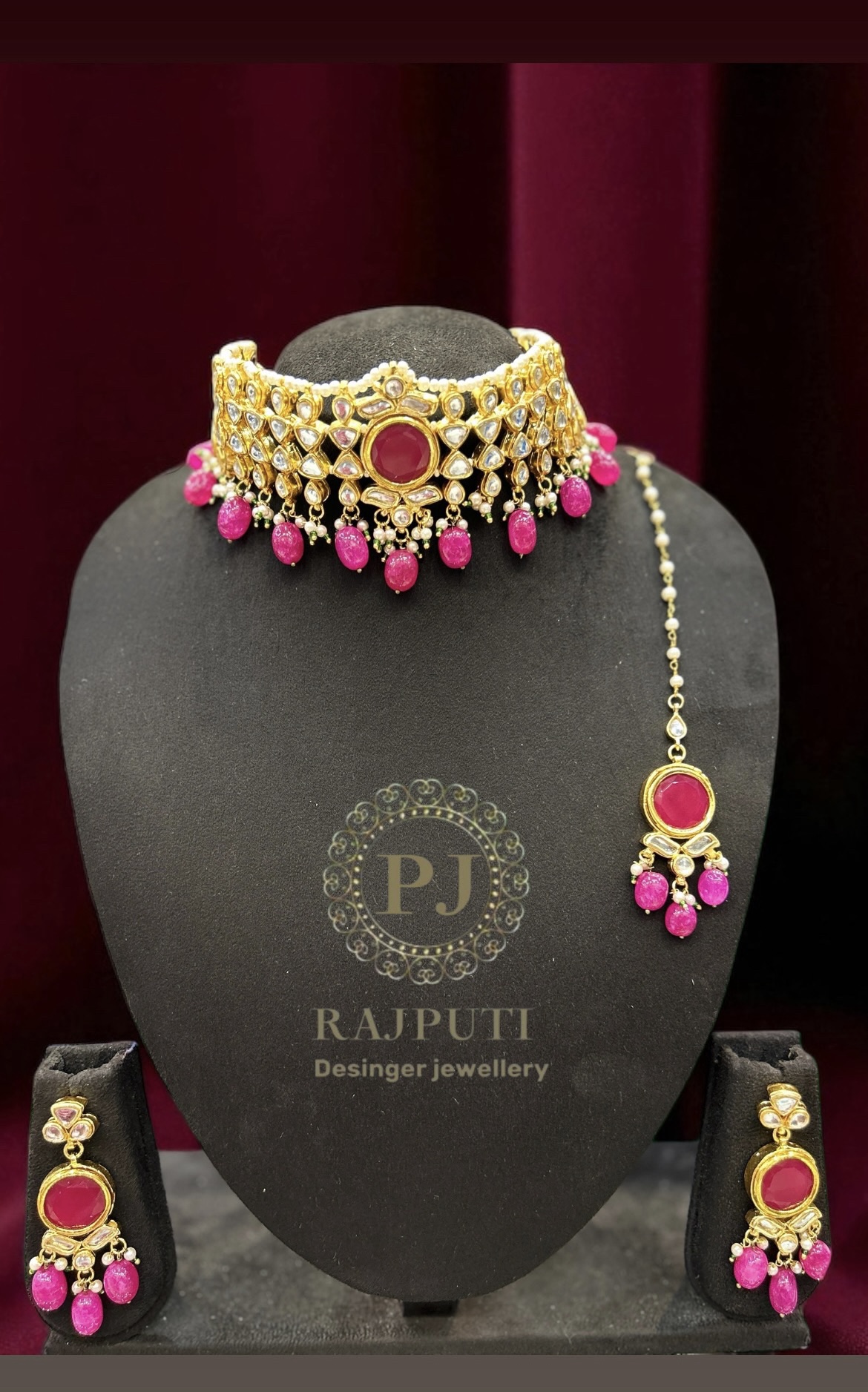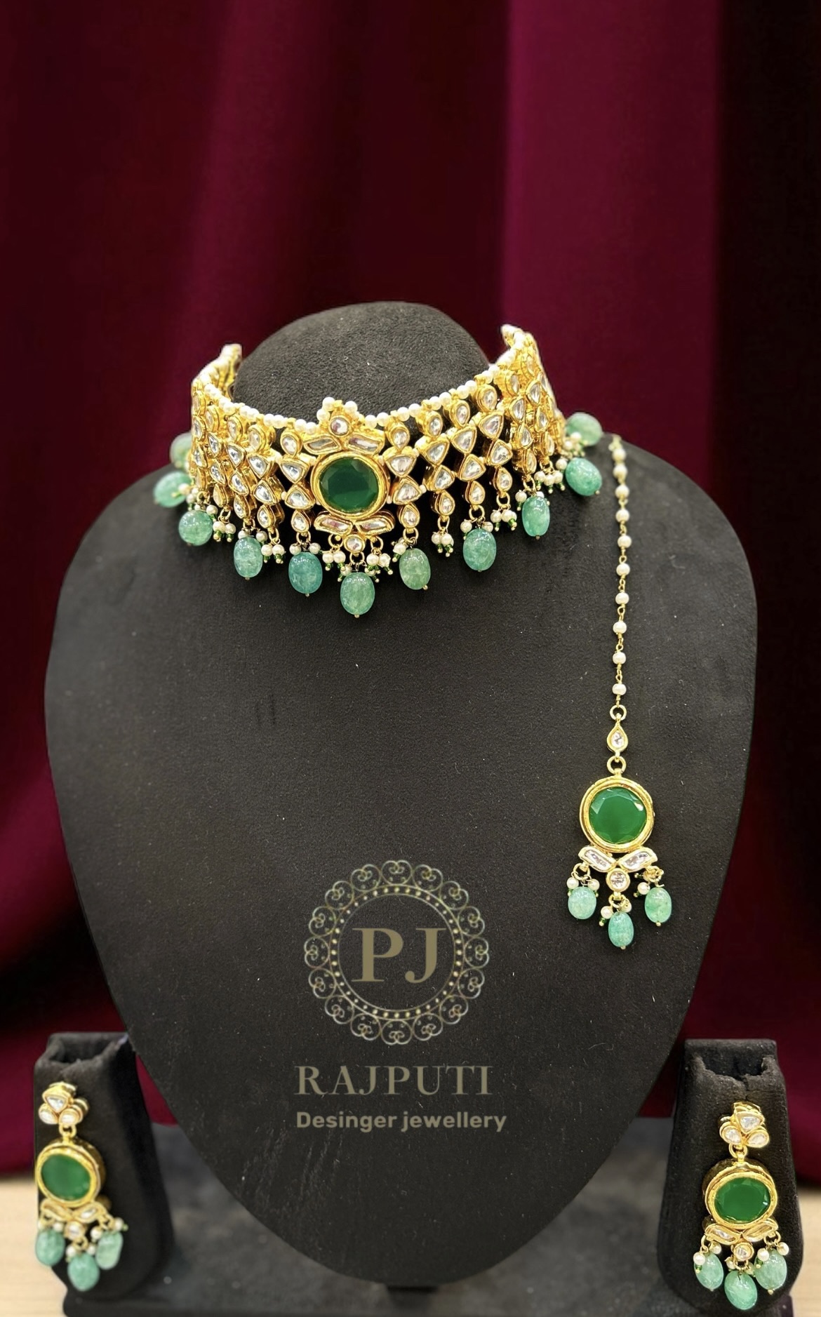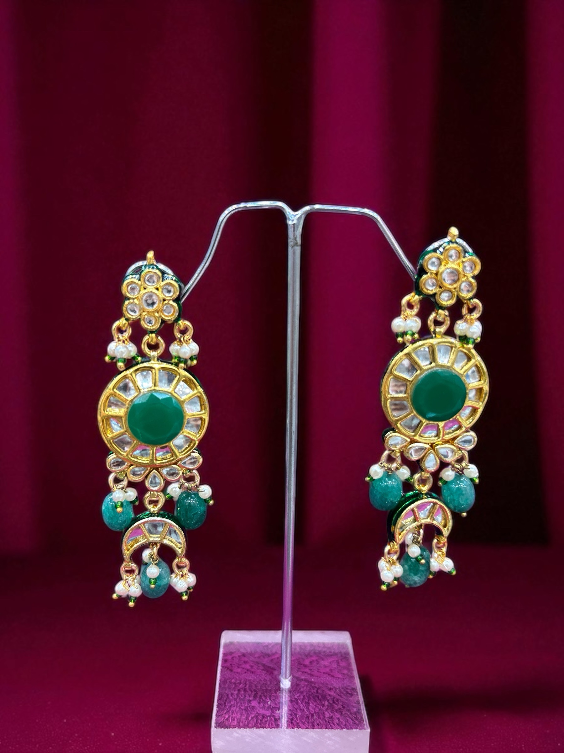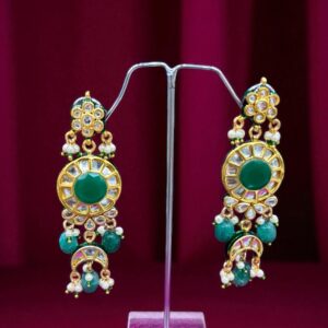 In th box : a piece of kundan set , a pair of earings , a piece of tika